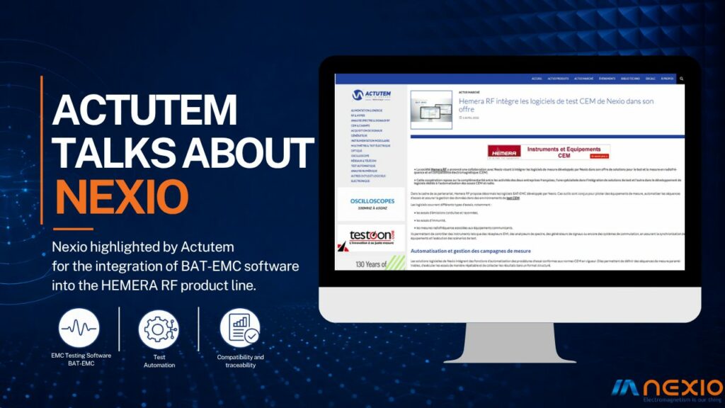 In an article published on April 2, 2026, the specialized media Actutem reports on the collaboration between HEMERA RF and NEXIO, involving the integration of BAT-EMC software into HEMERA RF’s offering. A fine endorsement of NEXIO’s expertise in EMC and radio testing.